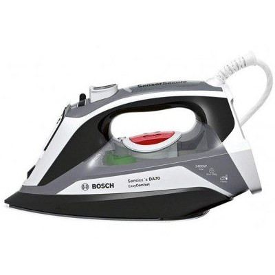 اتو بخار بوش مدل TDA70 EASY ساخت شرکت بوش دارای توان مصرفی 2400 وات است. سیستم ضدچکه، اسپری آب و بخاردهی عمودی ویژگیهای این اتو به شمار میآید. گنجایش مخزن آب دستگاه 380 میلی لیتر است که بخاردهی پیوسته آن 55 گرم در دقیقه و بخاردهی لحظهای نیز 200 گرم در دقیقه است. همچنین مجهز به سیستم ضد رسوب نیز میباشد. طراحی مناسب نوک اتو برای اتوکشی لباس بین دکمهها درزهای لباس اختصاص داده شده است.