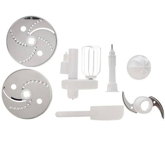 غذاساز این مجموعه یک نمونه 900 واتی است که طبق اعلام سازنده با آن میتوانید 22 کار مختلف را انجام دهید. از نکات جالب توجه در مورد این محصول میتوان به وجود مخلوطکن و کاسه غذاساز بهطور همزمان روی بدنه آن اشاره کرد. پارچ مخلوزکن در نظر گرفته شده برای این مدل یک نمونه 1.5 لیتری است و کاسه غذاساز آن ظرفیتی معادل سه لیتر دارد. از دیگر مشخصات قابل اشاره در مورد این محصول میتوان به وجود آب مرکبات گیری و همزن در بستهبندی آن اشاره داشت. همچنین لازم به ذکر است که سرعت چرخش تیغههای این مدل را میتوانید در دو درجه مختلف تنظیم کنید.