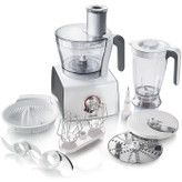 غذاساز فیلیپس HR7774 یک غذاساز 30 کاره با موتور قدرتمند 1000 وات و ظرف خردکن بزرگ 3.4 لیتری، داشتن رندههای مختلف، به همراه قابلیتهای خردکن، مخلوط کن، آب مرکبات گیری و همزن میتواند تمام نیاز های شما را از یک غذاساز خانگی و حرفه ای برطرف سازد. دستگاه غذاساز HR7774 با طراحی در رنگ مشکی و سفید ساخته شده است و میتوانید با سایر لوازم داخل آشپزخانه هماهنگ کنید.