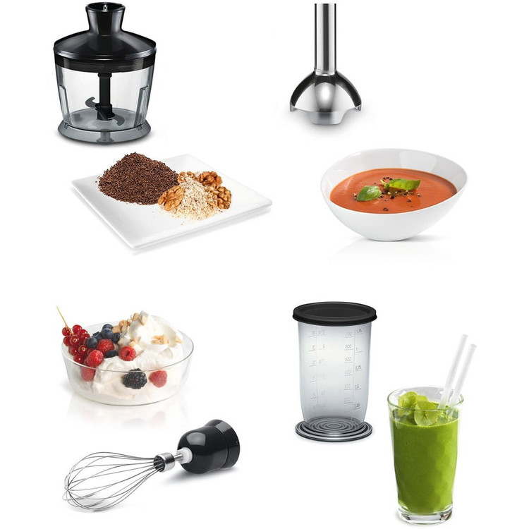 گوشت کوب برقی بوش مدل BOSCH MSM2650B، با توان مصرفی 600 وات و امکان انجام چندین عملکرد، یک گزینه مناسب برای آشپزخانه شما خواهد بود. موتور قدرتمند این دستگاه با اعمال سرعتی قابل قبول و ثابت و در عین حال کم صدا و کم لرزش آماده است تا فرایند له و مخلوط کردن مواد غذایی مدنظر شما از قبیل سوپ، نوشیدنیها، سبزیجات و انواع پنیر را با حداکثر توان و برای دستیابی به بهترین نتایج به انجام برساند. بهرهگیری از تیغه 4 لبه موسوم به QuattroBlade موجب ایجاد حداکثر قدرت برش و مخلوط کردن انواع مواد غذایی حتی مواد غذایی با قطع بزرگ شده است. همچنین با وجود قابلیت AntiSplash از پاشیدن مواد غذایی به خارج از فضای لیوان در حین انجام فرایند و کثیف شدن آشپزخانه جلوگیری خواهد شد. لیوان مدرج این گوشت کوب دارای ظرفیت 700 میلیلیتر بوده و امکان اختلاط و له کردن مواد غذایی را به راحتی فراهم میآورد. اما عملکردهای دستگاه به این مورد ختم نمیشود؛ وجود یک همزن بالونی با قابلیت جایگزینی با پایه گوشت کوب برقی برای هم زدن و ورز آوردن انواع مواد غذایی و همچنین یک خردکن کوچک با قابلیت خرد کردن انواع مواد غذایی دیگر امکانات این دستگاه به شمار میآیند. دسته ارگونومیک و سبک این دستگاه لذت تجربه یک استفاده آسان و بدون ایجاد خستگی را در اختیار شما قرار خواهد داد. با قابلیت تفکیک پایه گوشت کوب به راحتی و تنها با فشردن یک دکمه، با توجه به جنس استیل ضدزنگ این قسمت از گوشت کوب برقی بوش مدل BOSCH MSM2650B، امکان شستشوی آن را زیر آب و یا در ماشین ظرفشویی خواهید داشت